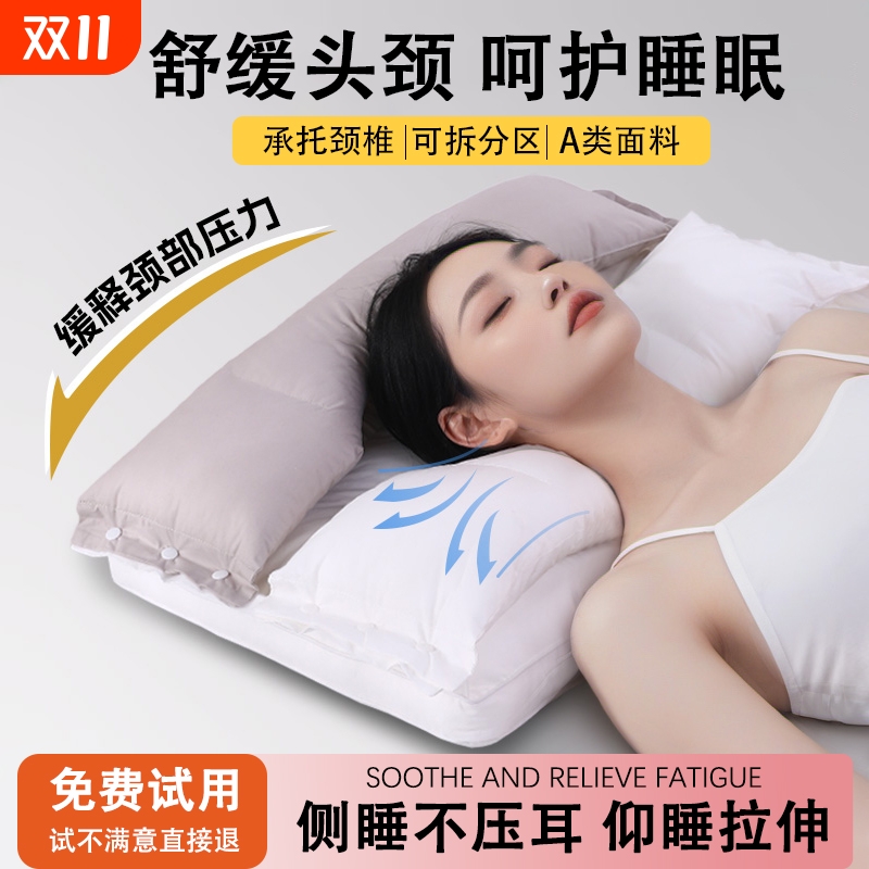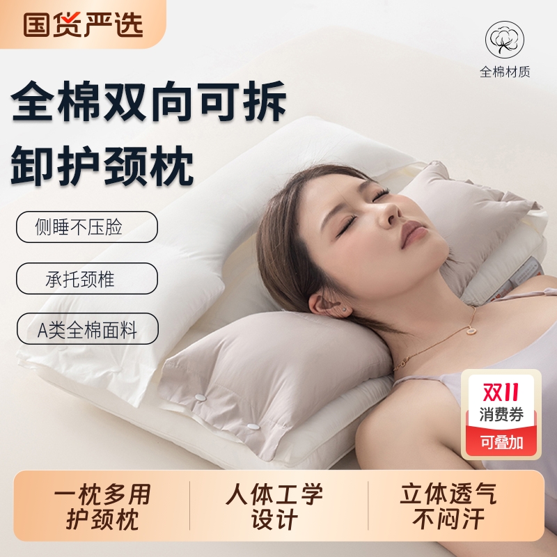 全棉枕头护颈椎助睡眠枕芯颈椎病富贵包打呼噜专用睡觉侧睡牵引枕