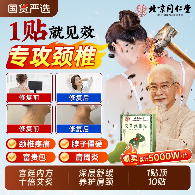 北京同仁堂艾草颈椎贴颈椎病专用贴膏肩颈正品富贵包消除热敷贴