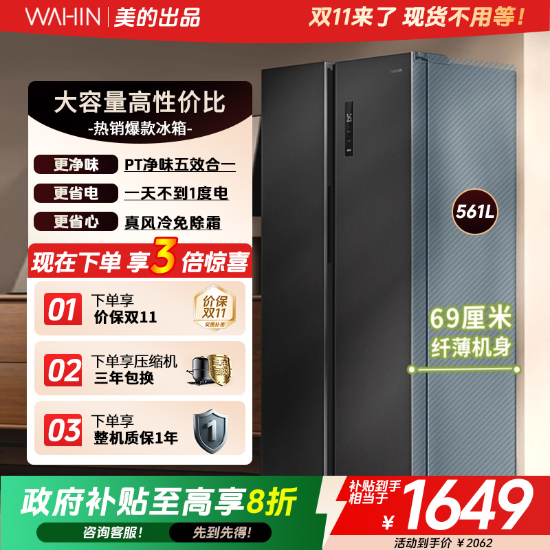 美的出品华凌640对开双开门冰箱家用大容量超薄风冷无霜变频一级