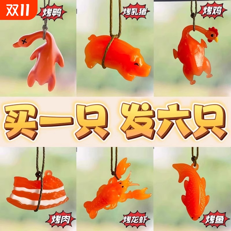 会变色的烤鸭挂件玩具钥匙扣紫外线动物小礼物儿童女螃蟹乳猪夜光