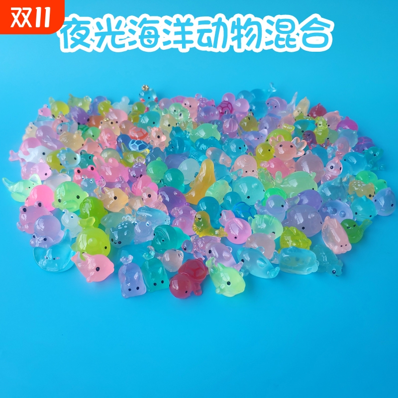 迷你夜光发光卡通海洋小动物摆件树脂荧光海豚小鱼象可爱创意玩具