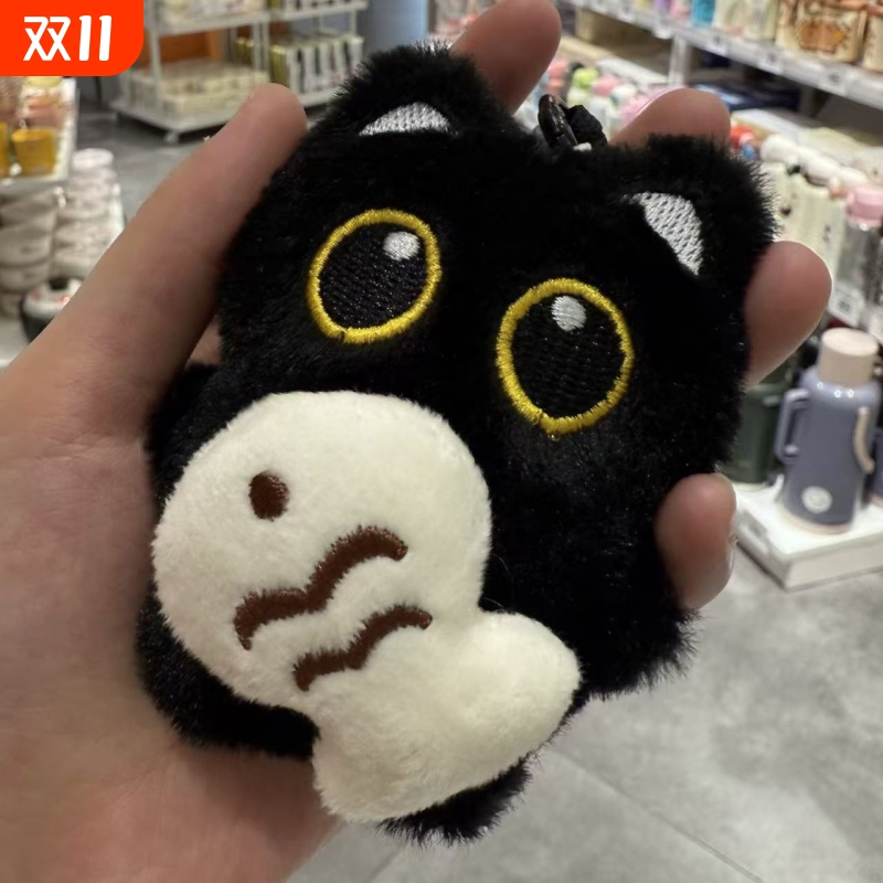 可爱抱小鱼大眼黑猫毛绒玩偶情侣包挂件小黑猫钥匙扣礼物动物挂绳