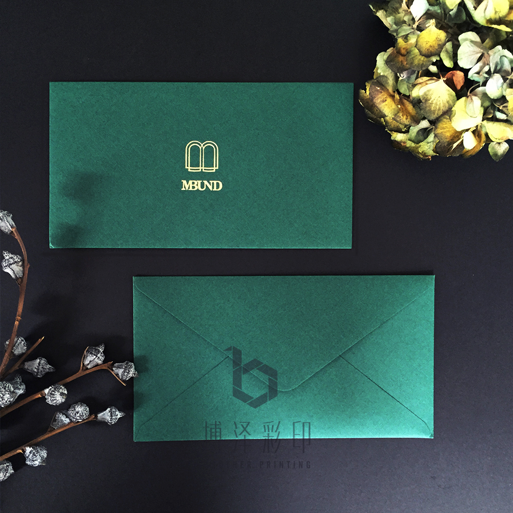 定制少量230g墨绿深绿色莱尼纹路哑光卡纸烫金婚礼商务信封封套