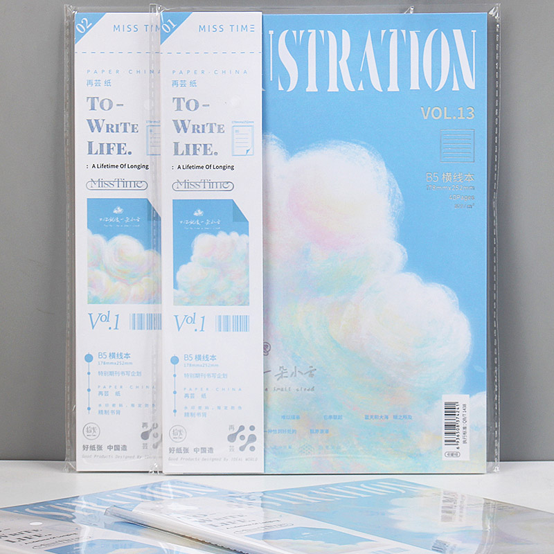 拾光无线期刊笔记本子文具B5大号治愈天空横线日记事你就像一朵云
