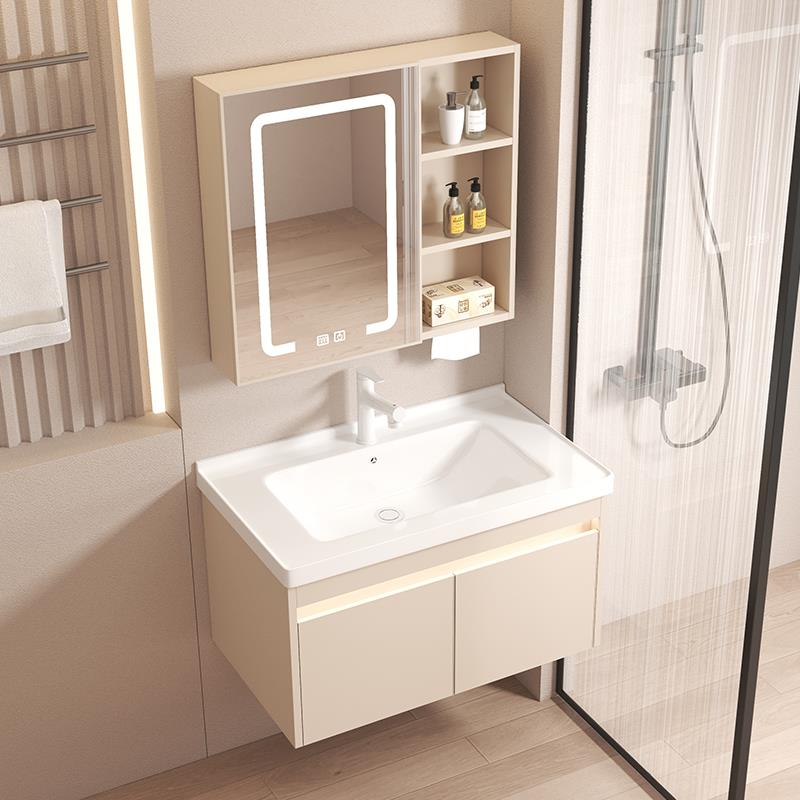 陶瓷一体盆75/85/95/105/115厘米洗漱台原木色浴室柜