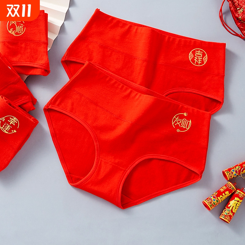 本命年红内裤女纯棉抗菌裆中腰全棉红色结婚属虎年三角短裤头女士