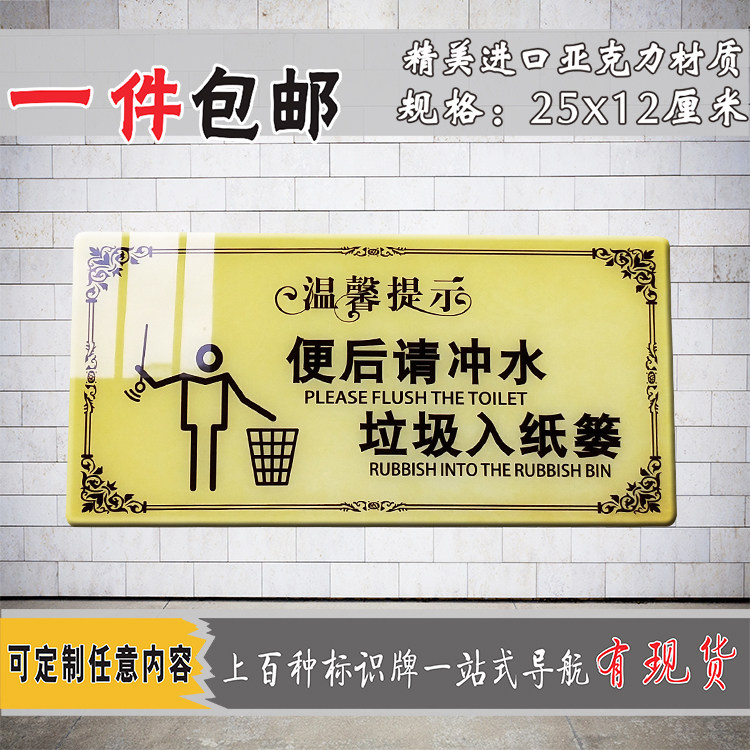 亚克力便后请冲水垃圾扔入纸篓标志牌洗手间文明如厕标语提示牌