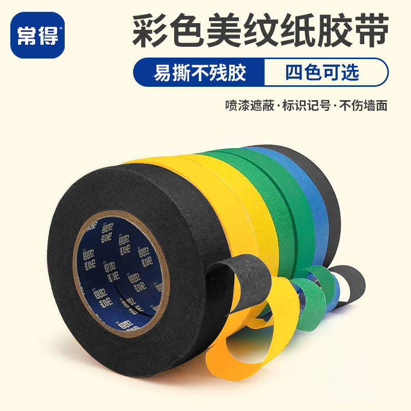 常得彩色美纹纸胶带装修喷漆遮蔽用黑色蓝色黄色蓝色和纸胶带高粘易撕