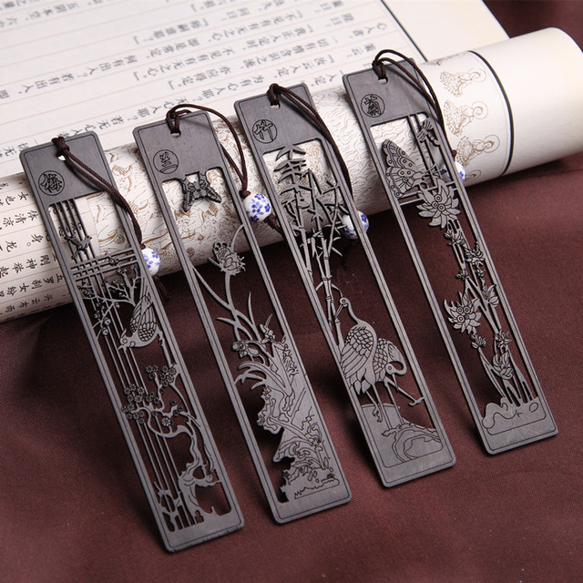 高档酸枝楠木佛手书签套装 梅兰竹菊科檀黑檀木书签礼品 送礼盒