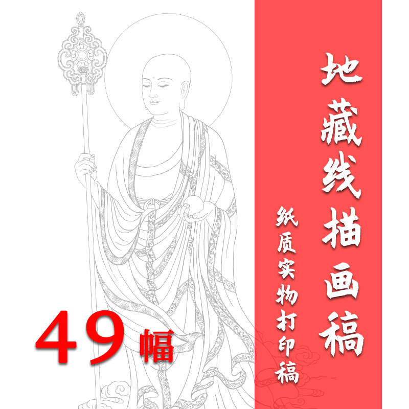 工笔地藏佛像国画高清白描底稿