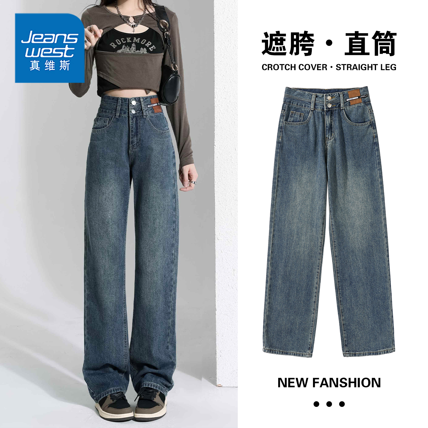 真维斯窄版阔腿牛仔裤女秋季新款