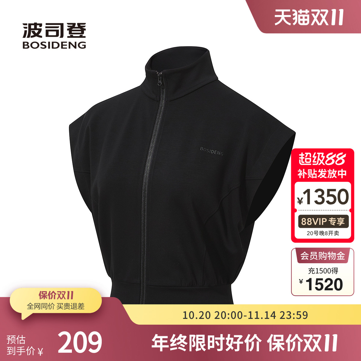 波司登立领无袖上衣舒适户外显瘦
