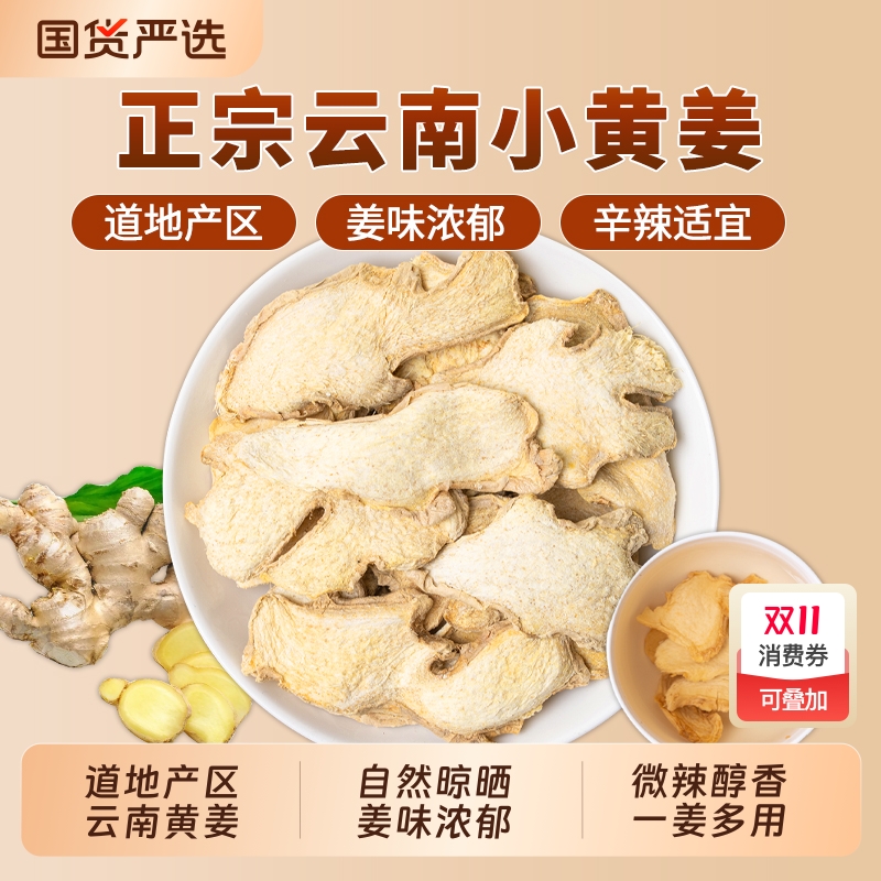 正宗云南小黄姜干姜片中药材官方旗舰店泡水喝食用生姜片甘草泡茶