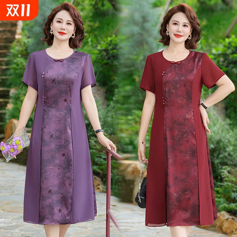 妈妈婚礼连衣裙中老年人夏季女装高端喜婆婆婚宴礼服裙子平时可穿