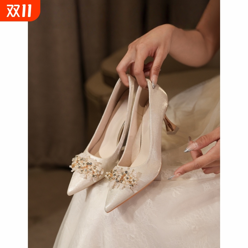 法式绝美新娘鞋2025新款秀禾婚纱两穿高跟鞋平时可穿气质温柔婚鞋
