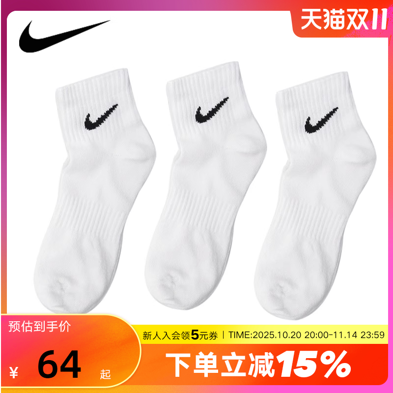 NIKE耐克男女袜低帮白色运动袜休闲训练短袜3双装袜子SX767