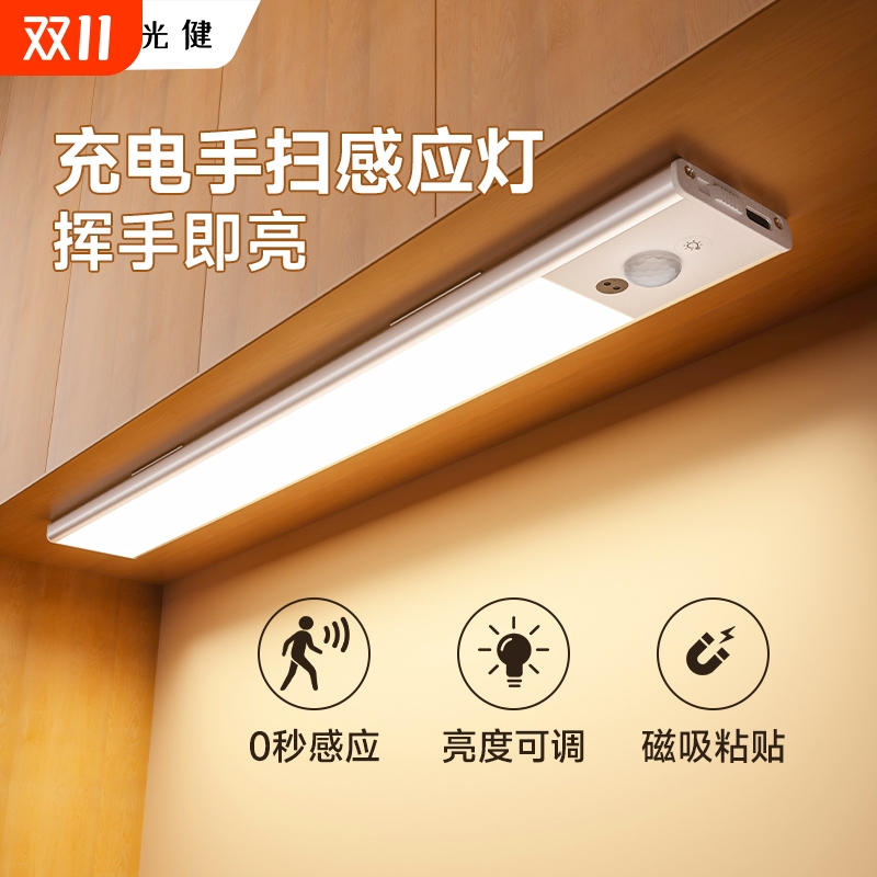 手扫感应灯条无线超薄进门自动玄关鞋柜子起夜间下床底厨房橱柜灯