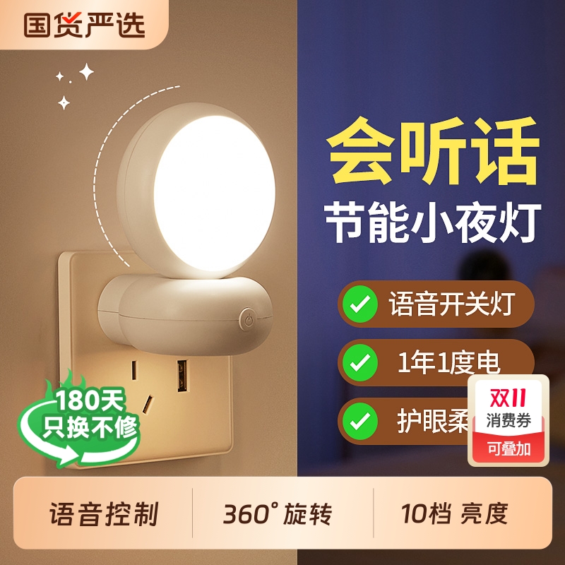 智能语音小夜灯空调伴侣声控感应一led婴儿护眼usb床头卧室睡眠