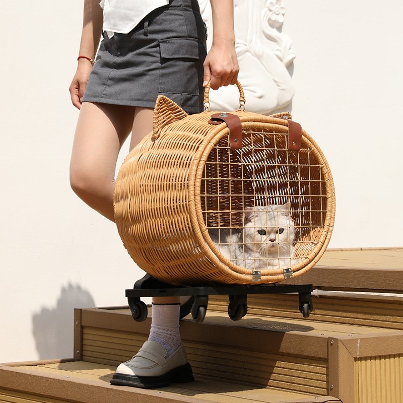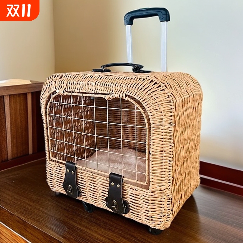 猫包便携外出宠物拉杆箱编织行李箱狗狗包高颜值防应激猫咪背包