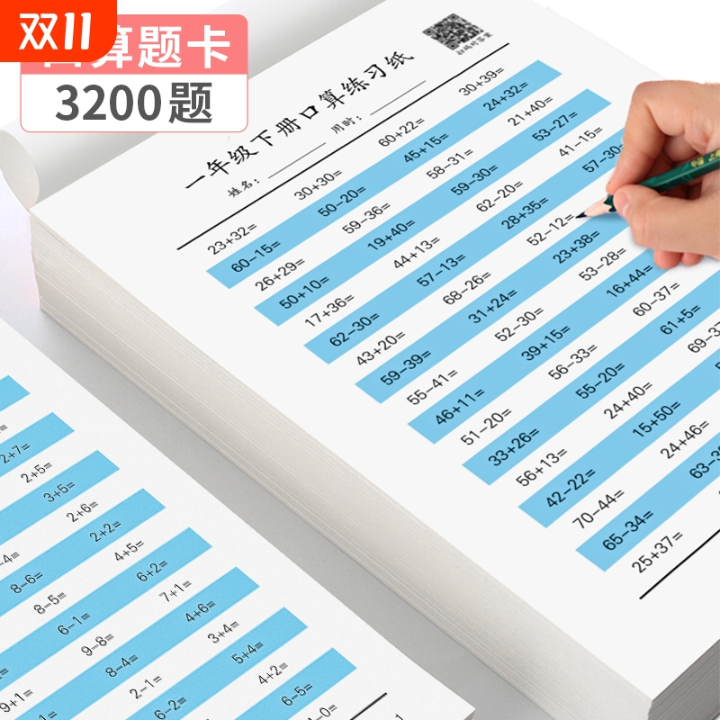 小学通用一二三年级上册下册数学计算加减乘除法口算题卡列竖式脱式四