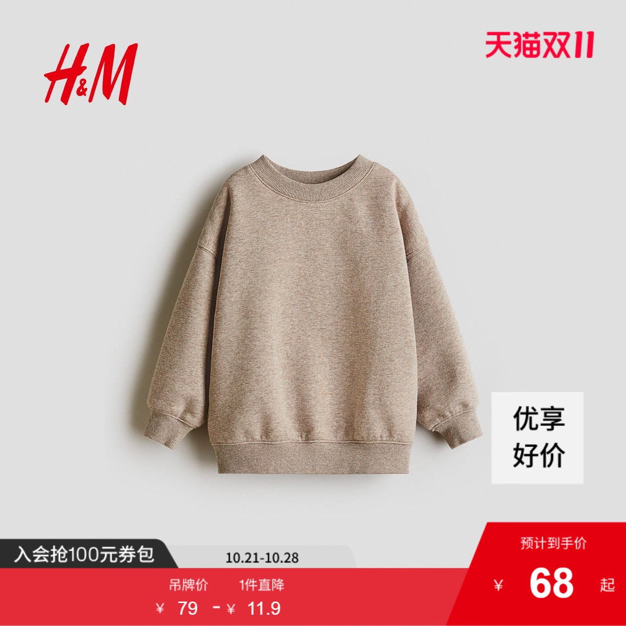 HM童装儿童男童卫衣秋季宽松柔软舒适大廓形圆领长袖上衣12453