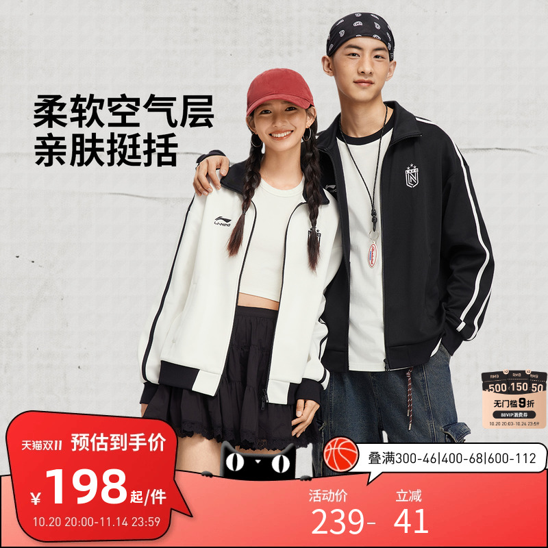 李宁运动服 运动时尚系列 男女同款透气柔软舒适开衫无帽卫衣