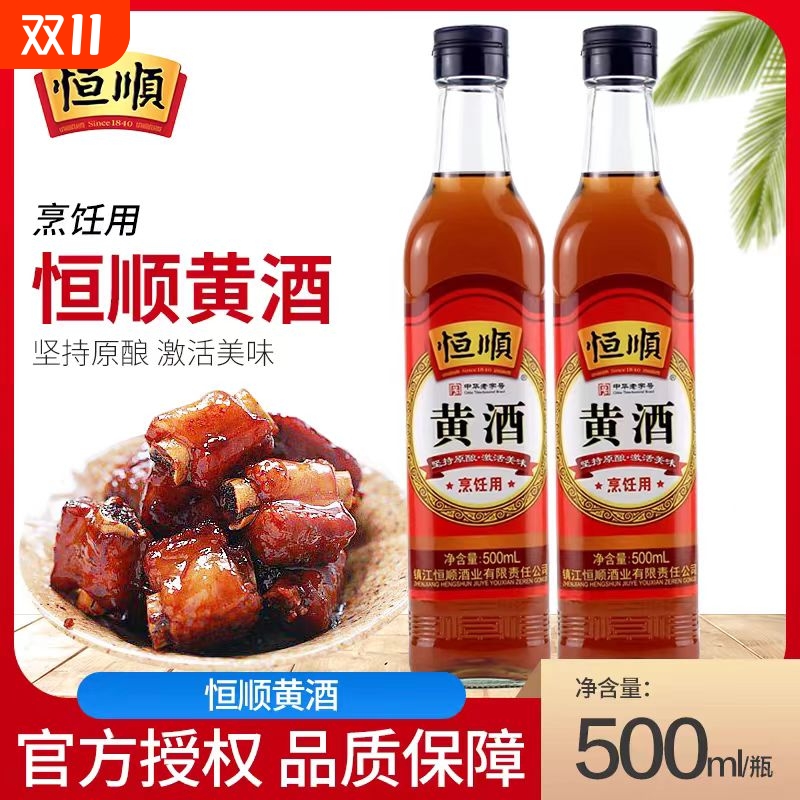 恒顺黄酒500ml/瓶泡阿胶做药引烹饪去腥传统料酒炒菜餐饮