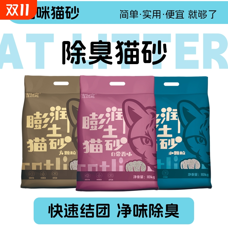 当然宠 膨润土猫砂包邮20公斤10kg猫沙除臭结团低尘猫砂猫咪用
