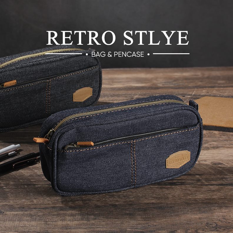 复古耐磨尤斯隆很忙笔袋大容量收纳袋工业风包分层学生文具牛仔