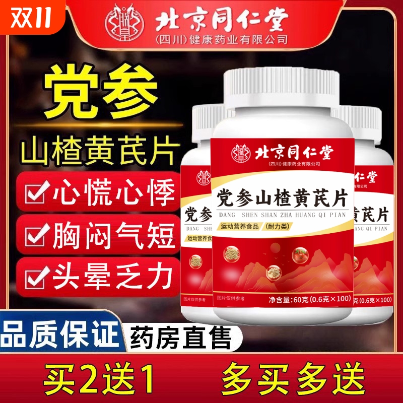 北京党参山楂黄芪片维生素非心慌心悸头晕胸闷气短9py