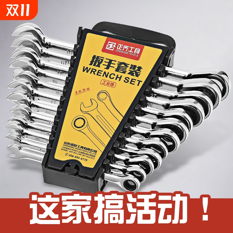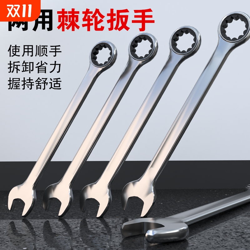 快速梅花棘轮扳手自动双向两用开口快轮小棘轮省力工业级快板套装