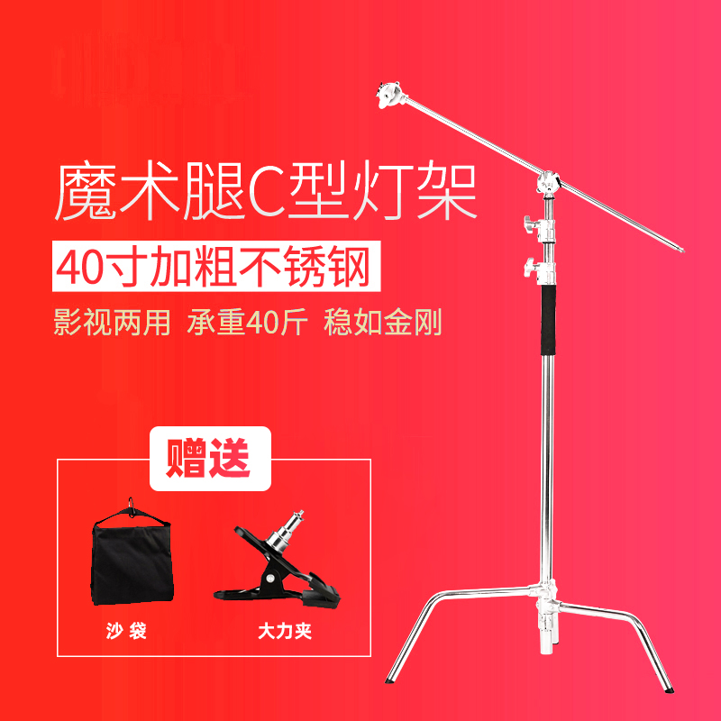 C型架不锈钢影棚灯架魔术腿重型斜臂顶灯架影视旗板柔光支架40寸