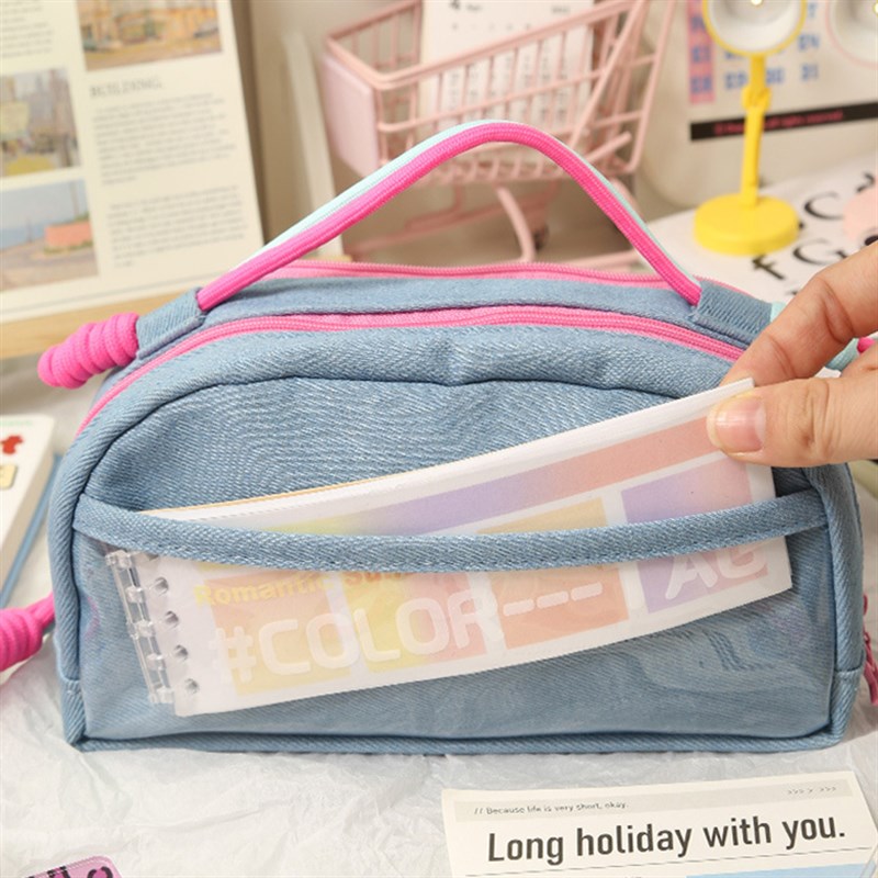 追星女孩牛仔布笔袋可放小卡高颜值小众不撞款大容量初中女生韩系