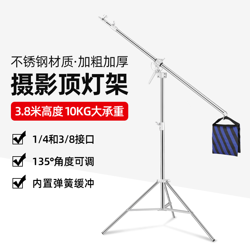 大号单斜臂横杆多功能横杆不锈刚顶灯架服装平铺拍摄架带沙袋