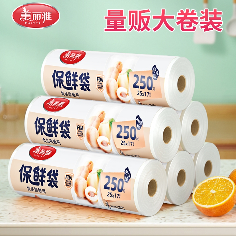 加厚保鲜袋家用食品级大卷经济装一次性厨房包装袋透明平口食品袋