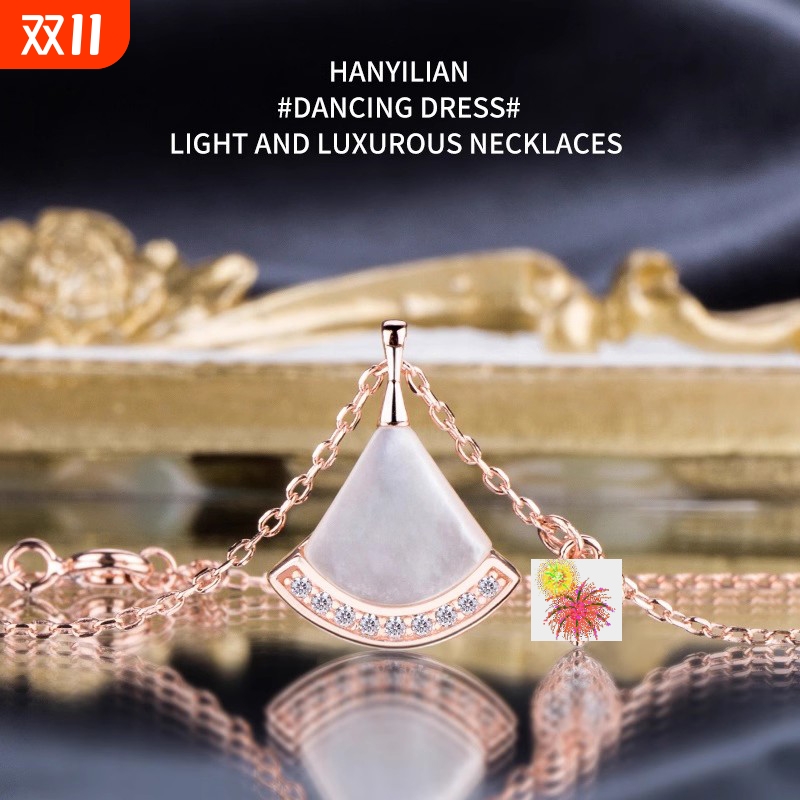 小裙子贝母项链女款纯银镀18K金轻奢扇形锁骨链送女友情人节礼物