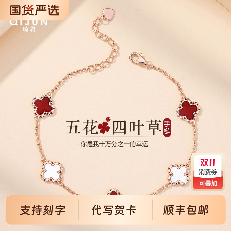 情人节四叶草手链轻奢送女友五花手饰新款玛瑙琦君生日礼物高级感