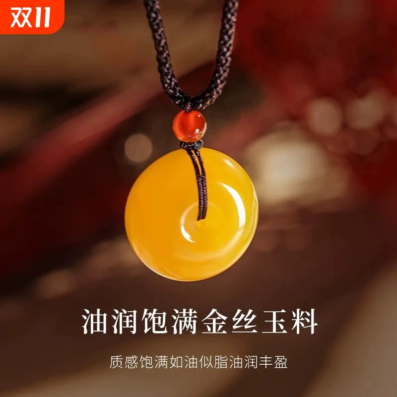 金丝玉平安扣项链女高级小众轻奢吊坠情人节礼物送女友对象黄龙玉