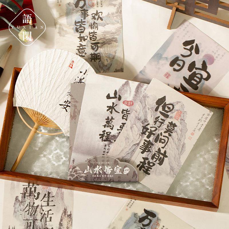 喜常在文字乐背景材纸国风水墨画创物意礼包装手帐素打底纸