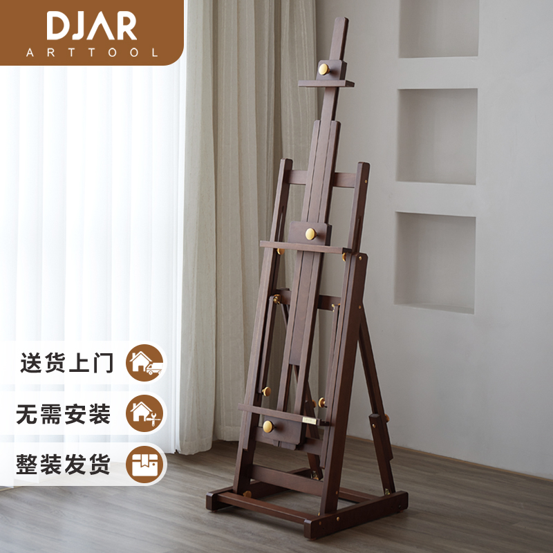 DJAR意式极简轻奢胡桃木色专业艺术家复古平立两用油画架实木落地