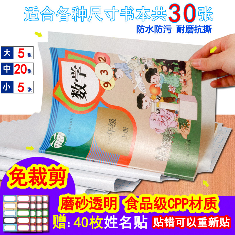 加厚一体化自粘包书皮 透明磨砂免裁剪学生初环保防水大号A4