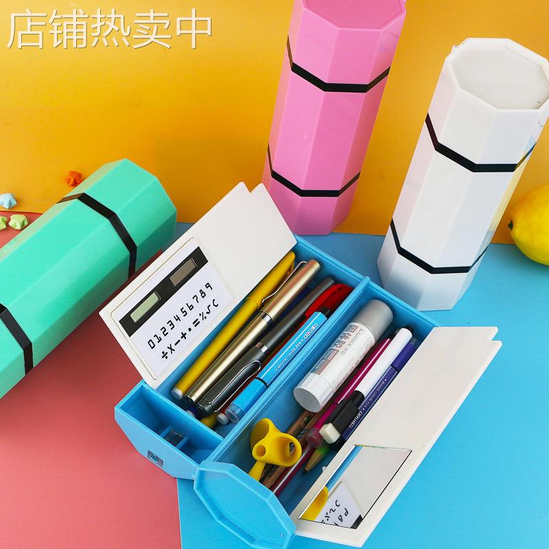 新款大容量创意文具盒学生多功能便携塑料磁吸铅笔盒桌面收纳笔盒