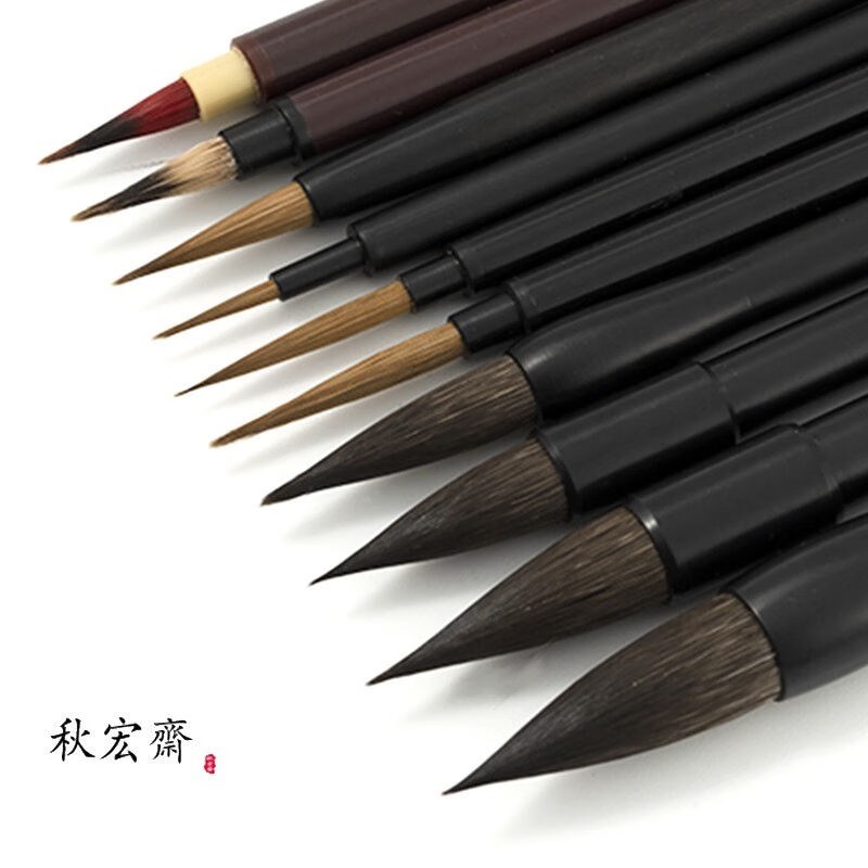 秋宏齋秀意水彩画笔手工毛笔竹杆木杆狼毫手工扬州毛笔蝇头小楷抄