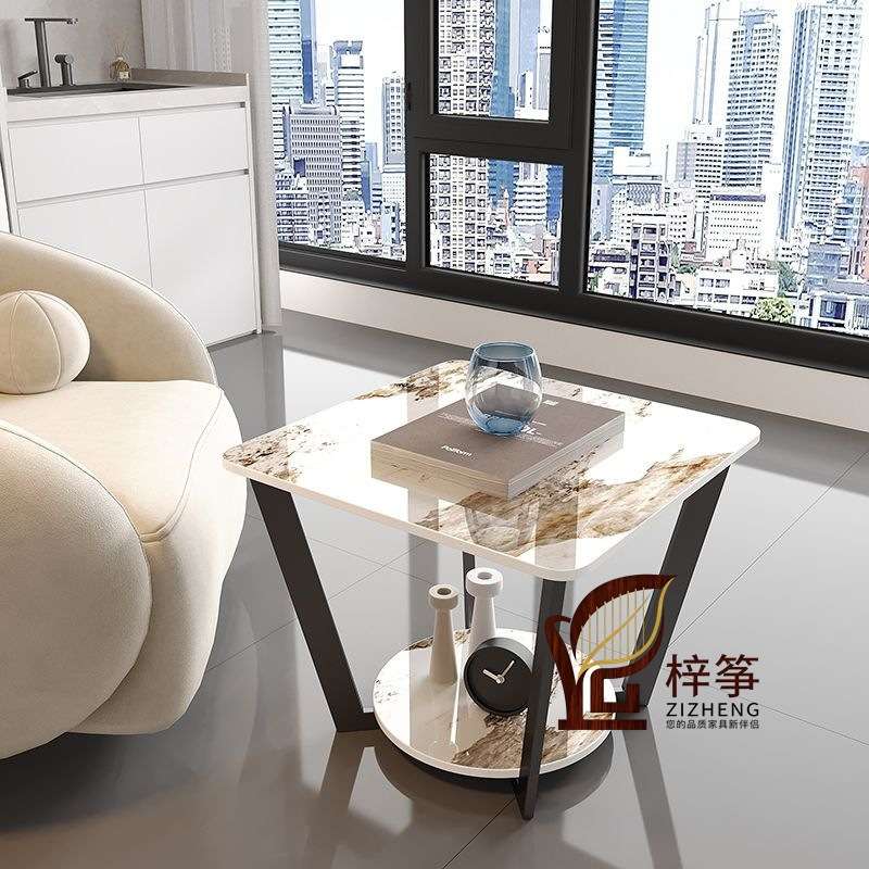 新款北欧沙发边几轻奢意式极简方桌床头边柜大理石岩板小茶几角几