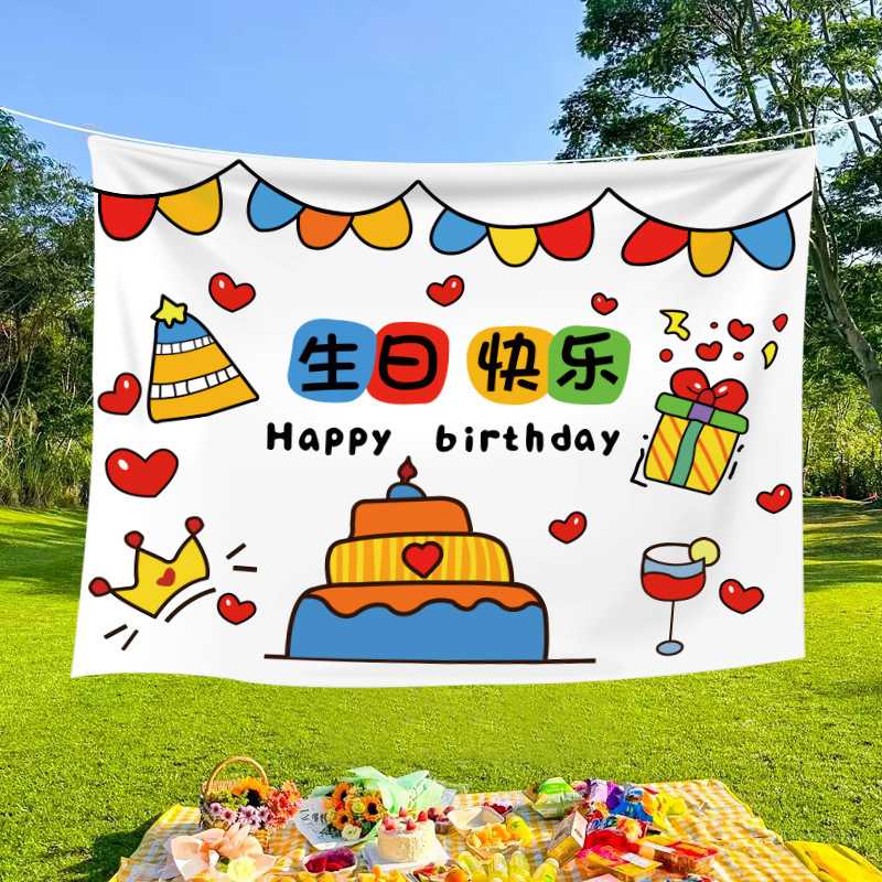 生日场景布置快乐挂布背景布可爱卡通儿童派对布置装饰ins卡意赛