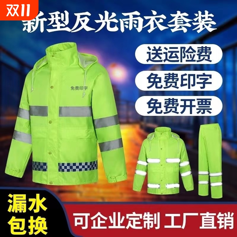 执勤反光雨衣雨裤套装交通骑行分体式雨衣成新型防水牛津布防雨