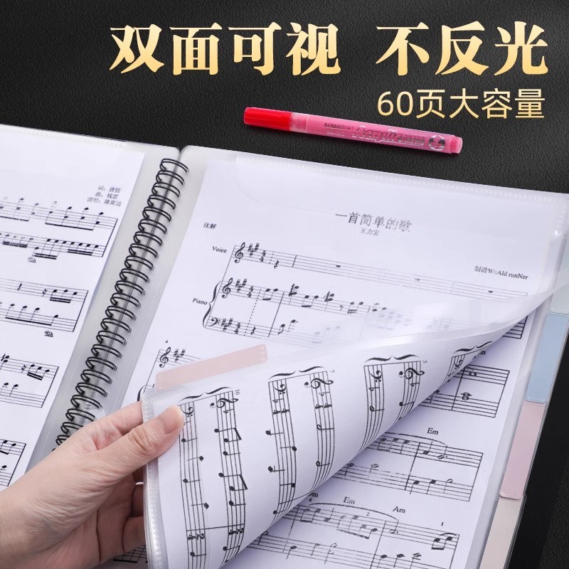 乐谱夹谱夹子文件夹不反光可修改透明插页架子鼓钢琴谱子黑色夹册