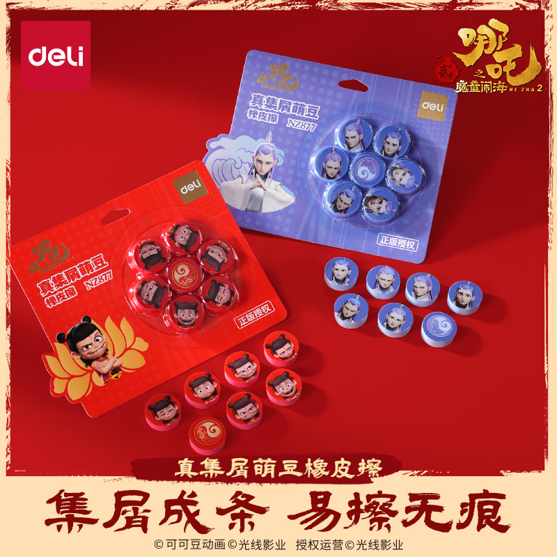 哪咤联名萌豆橡皮擦卡通一二年级小学生专用擦字成线擦拭成条敖丙魔童