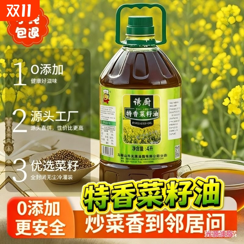 诱厨特香菜籽油4L食用油桶装家用炒菜农家风味家乡味浓香非转清香
