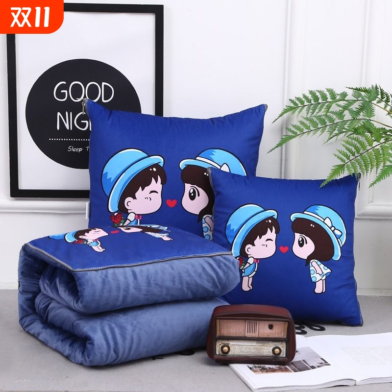 车载抱枕被子两用加厚保暖双面水晶绒汽车靠垫办公室午休沙发午枕